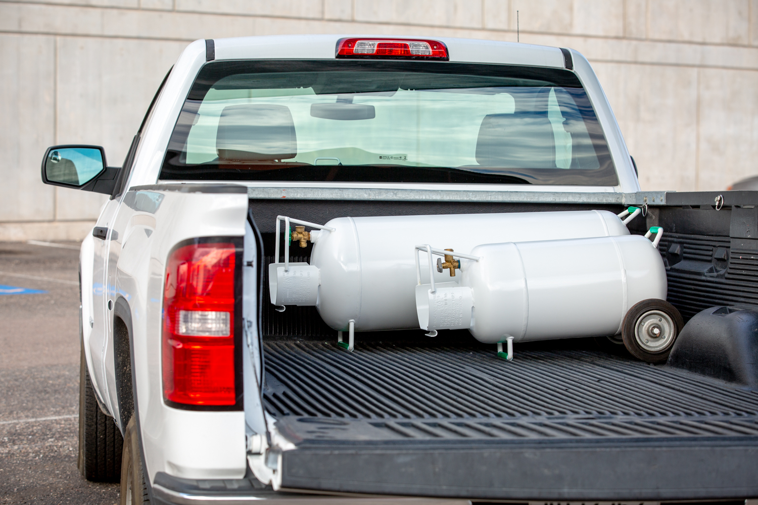 You may transport up to 1 000 pounds of propane in the back of an open pickup truck or trailer.